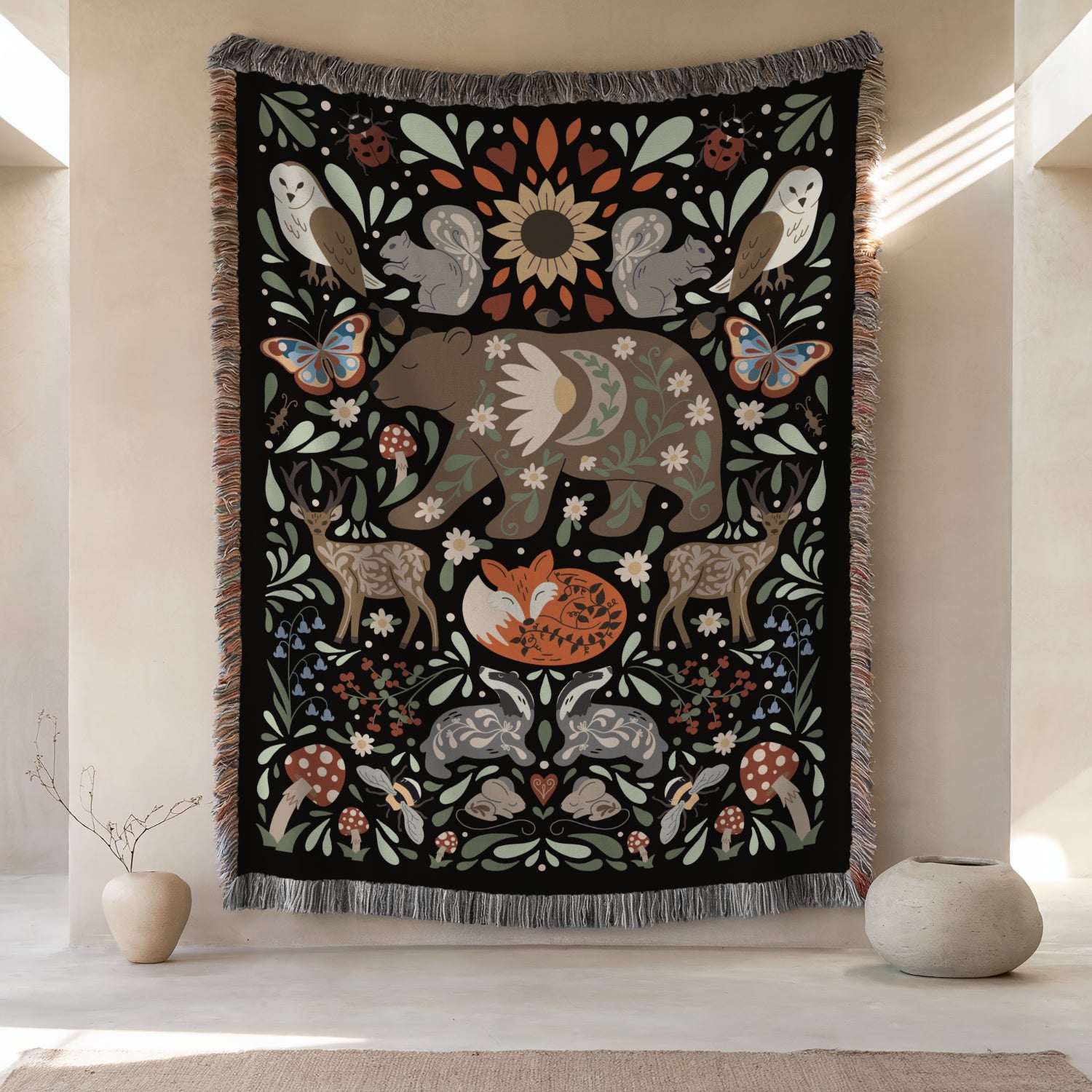 Embrace the magic of moonlit forests with our "Moonlit Bear" blanket. A majestic bear wanders beneath the night sky, bringing a sense of calm and wonder to your space.